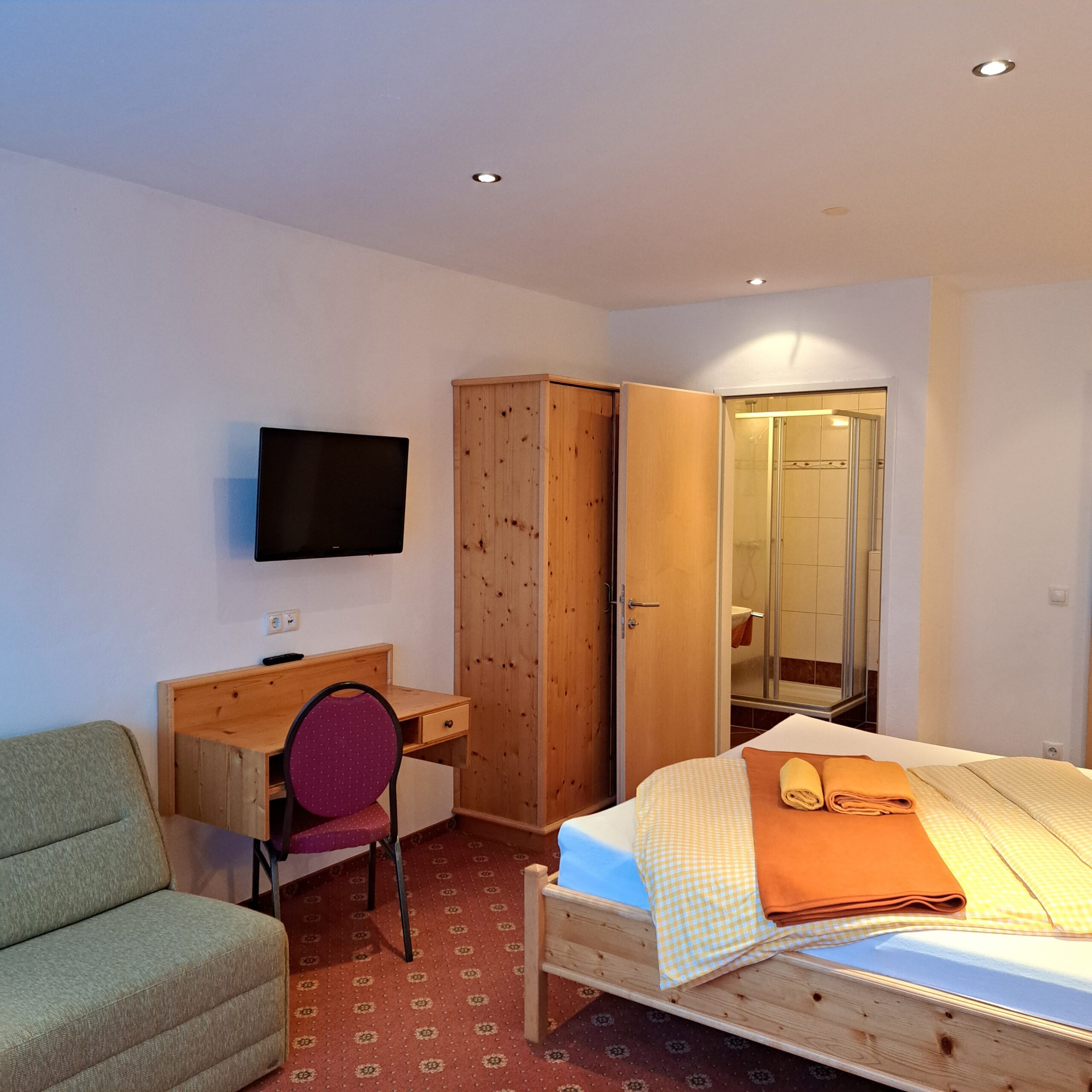 Die Wohnstudios sind für max. 2 Personen mit Kochnische und Doppelzimmer mit DU/WC, Safe und teilweise Terrasse.